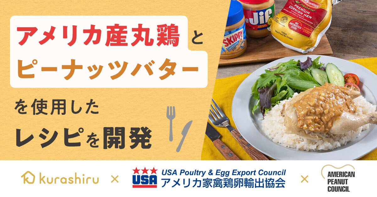 国内No.1のレシピ動画プラットフォーム「クラシル」(※1)は、アメリカ家禽鶏卵輸出協会「アメリカ産丸鶏(ゲームヘン)」とアメリカンピーナッツ協会「アメリカ産ピーナッツバター」のプロモーションとして、家庭で調理できるレシピを開発し、2022年7月6日(水)より「クラシル」アプリで公開します。また、レシピ動画は同協会の公式サイトおよびSNS上でも掲載します。