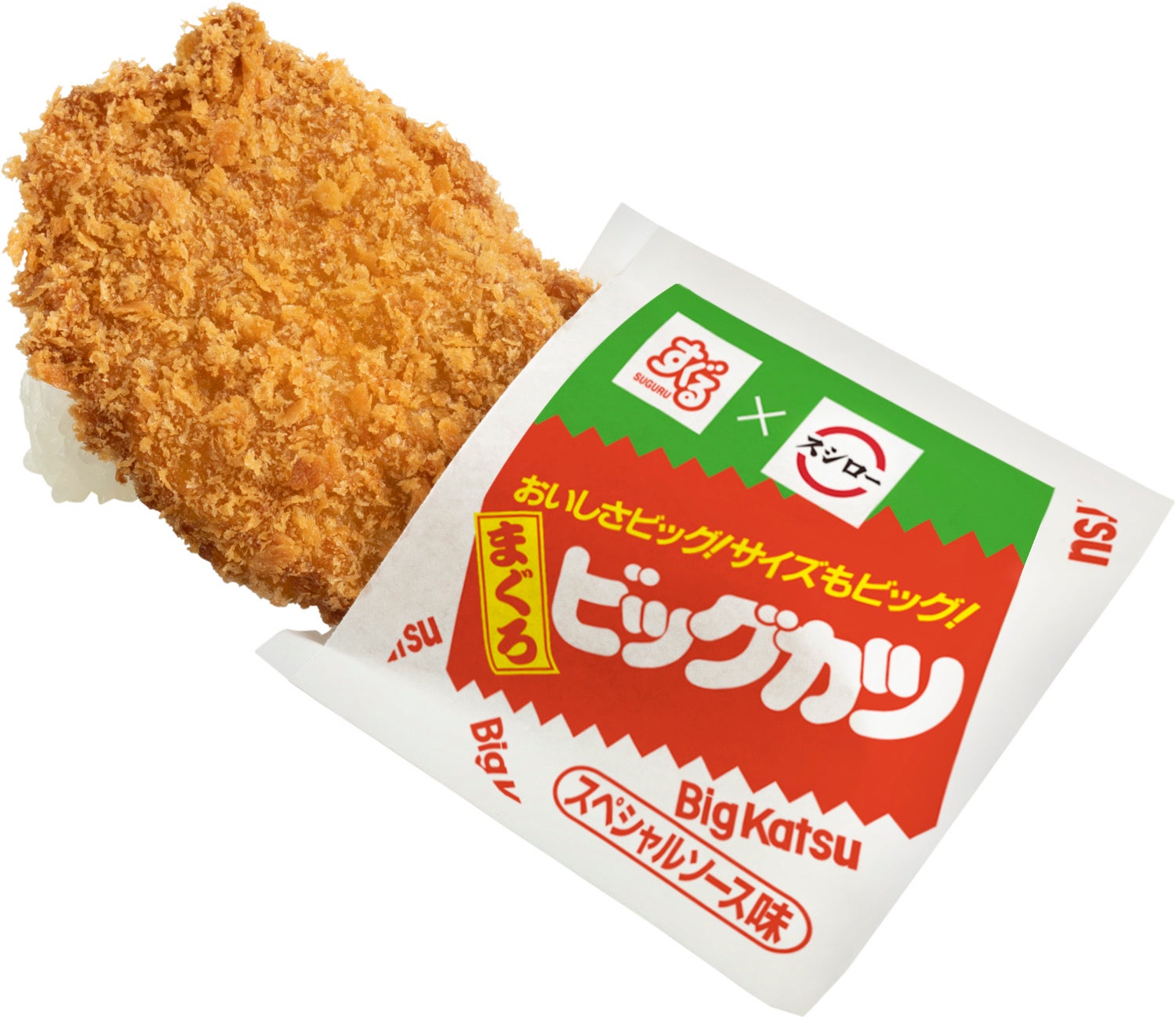 7月13日(水)より販売する「まぐろビッグカツ」は、株式会社 すぐるのロングセラー商品の「ビッグカツ」とコラボした商品です。様々な世代にファンをもち、長年愛されてきたあの懐かしの味を、スシローらしさを活かし、“まぐろ”を使用したカツで再現しました。