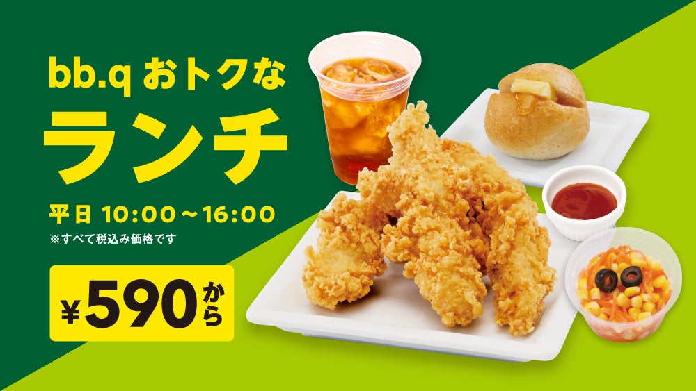 この度、より多くのお客様に当店のフライドチキンをご提供できるよう、平日ランチタイム限定でのお得なセットメニュー販売を全店展開することとなりました。是非、この機会に『bb.q オリーブチキンカフェ』をお試しください。