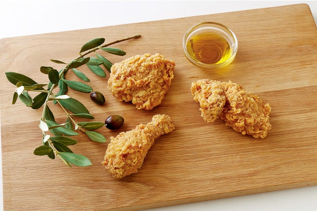当店自慢の「オリーブチキン」をはじめとするフライには、スペイン・カタルーニャ地方の契約農家から買い付けた「神の贈り物」と呼ばれるエキストラバージンオリーブオイルと、コレステロール0のソイオイルを配合した【究極のフライオイル】を使用しており、こだわりのオイルで揚げ、カリッとかろやかでピリッと香ばしい新感覚のフライドチキンは女性からも大変好評を博しています。