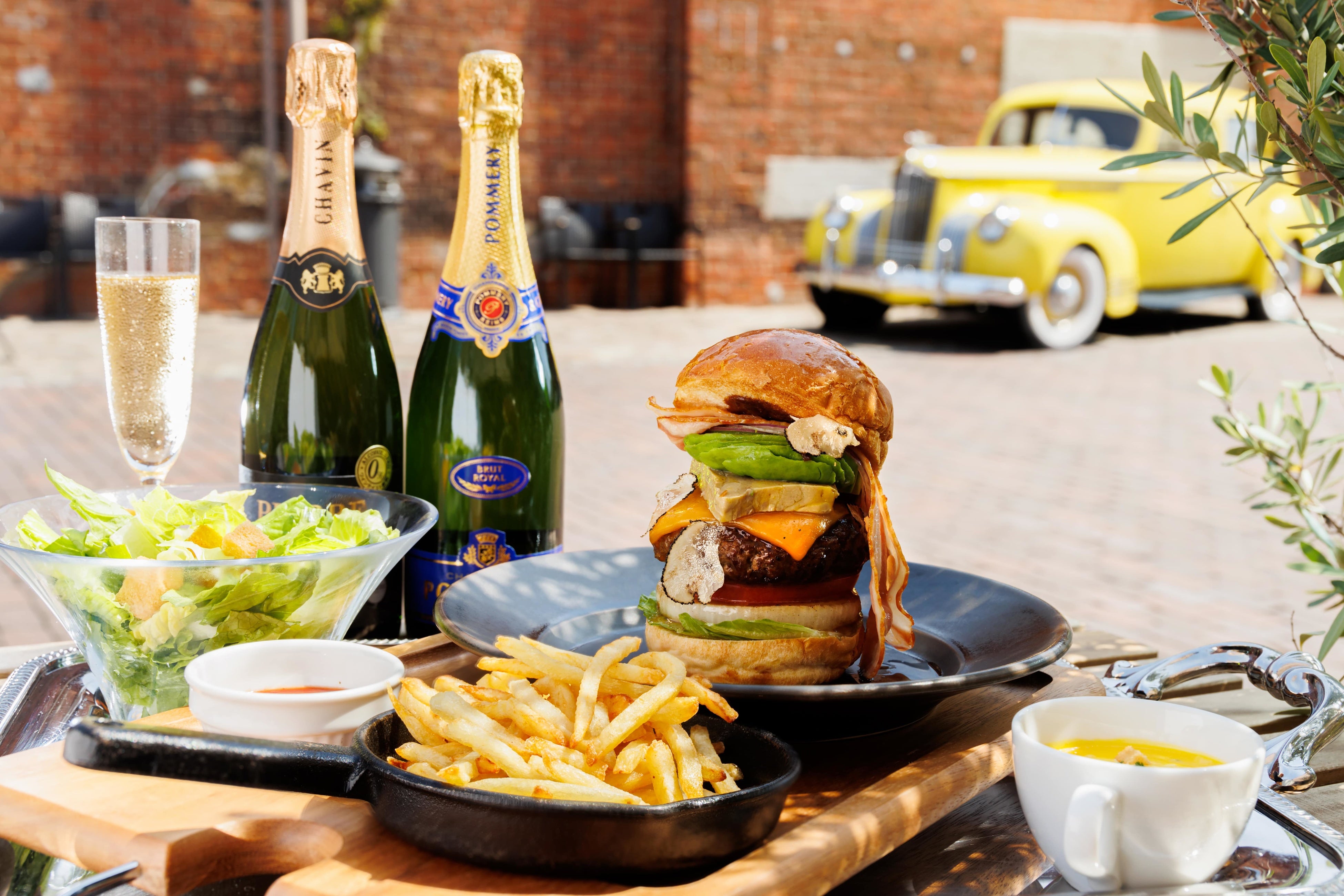 シュワッと冷んやりシャンパンと共にお楽しみ頂くのは、本プラン限定で考案いたしましたAKARENGA STEAK HOUSE特製ロッシーニハンバーガーやトリュフフライドポテト、サラダ、スープがついた盛りだくさんなランチプレートをご用意しております。