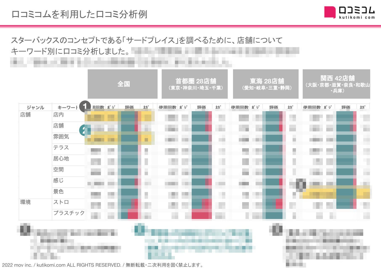 口コミサイトを”もっと”売上に変える『口コミコム』を運営する株式会社mov(代表取締役:渡邊 誠、本社:東京都渋谷区、以下mov)は、『口コミコム』独自のAI分析機能を用い、日本全国47都道府県のスターバックス各7店舗合計320店舗に寄せられた120,000件を超える口コミを分析してレポートを作成しました。