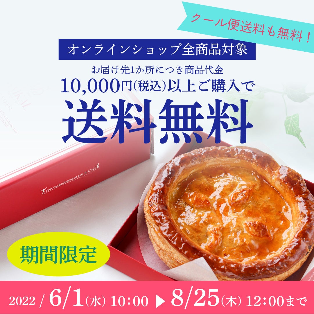 オンラインショップでご購入の際、お届け先1か所につき、商品代金10,000円(税込)以上お買い上げで、送料(クール便含む)を無料にてお届けします。