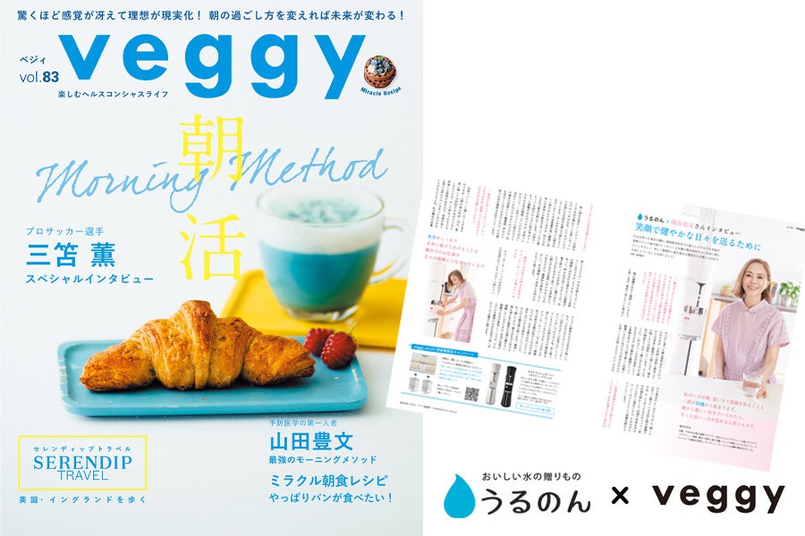 「うるのん」は、富士山のすそ野で採れた天然水「富士の天然水 さらり」(以下、さらり)を、全国にお届けする宅配水サービスです。この度、オーガニックやナチュラル志向の食生活を中心に「美と健康」を追求する雑誌『veggy vol.83』にて、「うるのん」が紹介される運びとなりました。掲載を記念して、誌面の二次元コードから新規お申込みをいただいた方限定で、オーガニックタオルセット(バスタオル・フェイスタオル)をプレゼントいたします。
