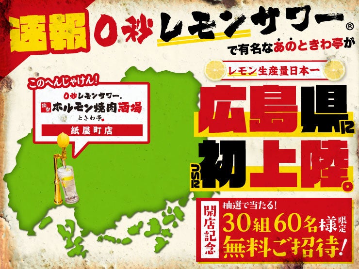 GOSSO株式会社(本社:東京都渋谷区、代表取締役:藤田建)は、2022年7月16日(土)に、69店舗目となる「0秒レモンサワー® 仙台ホルモン焼肉酒場 ときわ亭 紙屋町店」をオープンします。オープンを記念して、抽選で30組60名様の方を無料でご招待するキャンペーンを開催します。https://unit-g.com/tokiwatei_invitation/