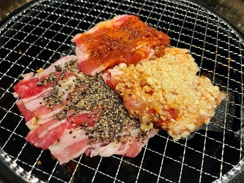 「Wガーリックカルビ」はニンニク1房の半分以上を使用。すりおろしニンニクの上に粗刻みニンニクをのせた、“明日に絶対に響いてしまう”一品。「ブラックスパイシーカルビ」は家庭で使用するブラックペッパー約50振り分、「レッドホットカルビ」は唐辛子5g(家庭で使用する一味唐辛子でいうと約50振り分)を使用しています。いずれも“鬼盛り”でインパクトのある味に仕上げました。