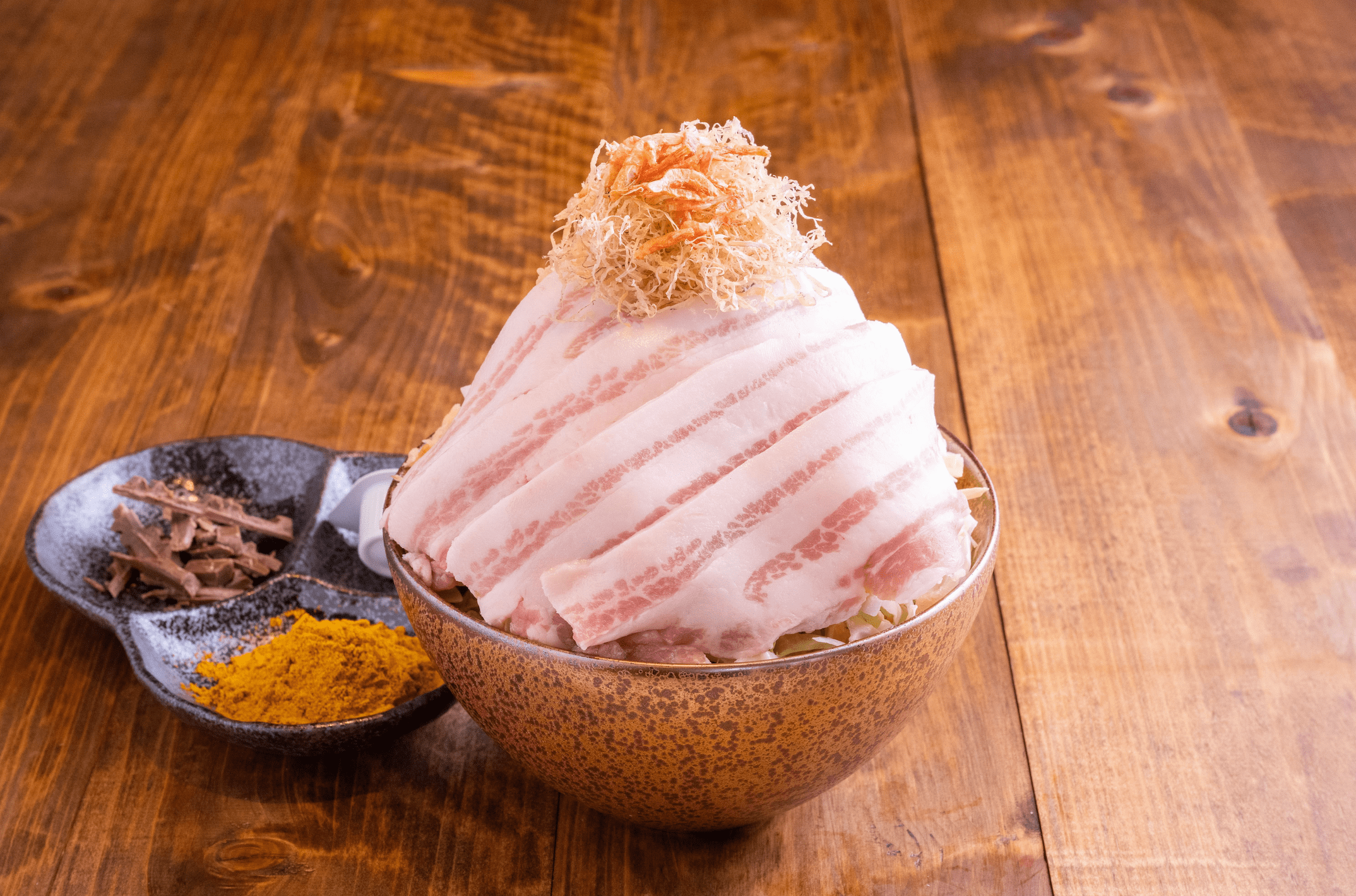 本場韓国産白菜キムチの旨味と乳酸菌を生きたまま閉じ込めた“冬眠キムチ”と岩手県産銘柄豚・岩中豚を合わせたもんじゃ。ほどよい辛さと酸味を感じる“冬眠キムチ”を岩中豚のまろやかな旨味が包み込み、相性は抜群。最後まで飽きることなくお召し上がりいただけます。