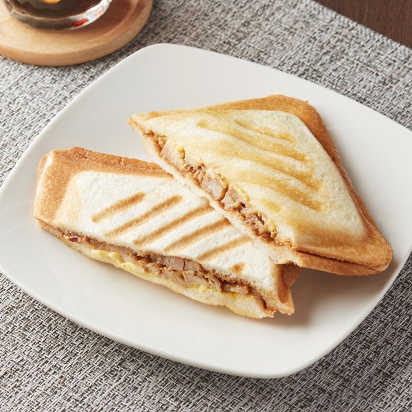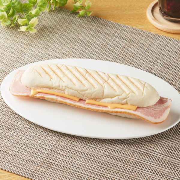 【内容】焼き目を付けたパニーニはオーブンで焼くことで外はサクッと、中はもっちりとした食感が特長です。厚切りのベーコン、チーズをサンドしました。