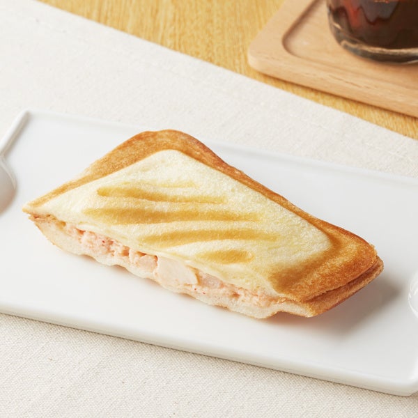 【内容】明太ポテトサラダをゴーダチーズと合わせてはさみ焼き上げたホットサンドです。ピリッとした明太ポテトサラダにとろけるゴーダチーズの組み合わせが抜群の商品です。