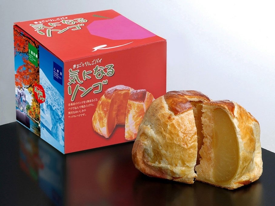 青森産のリンゴをシロップに漬け、まるごと1個をパイで包んで焼き上げたアップルパイです。