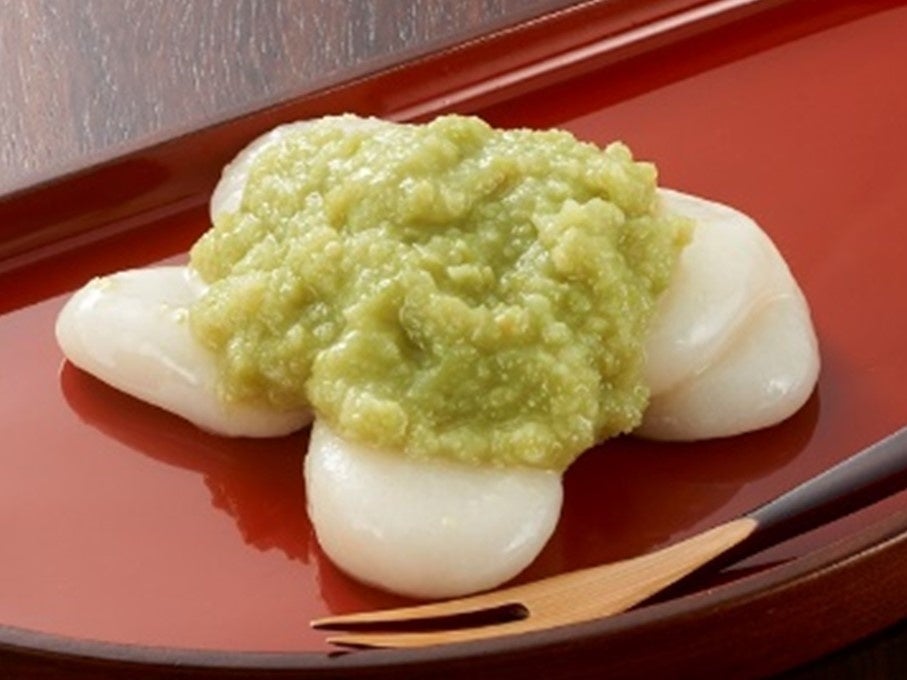岩手一関産の厳選されたもち米を使った杵つきもちに、枝豆の風味豊なずんだ餡をたっぷりとからめた名物です。