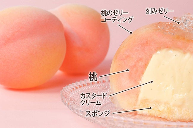 毎年、期間限定で販売している『まるごと白鳳』は、その名の通り、山梨県産の桃「白鳳」をまるごと1個使ったフォトジェニックな桃のケーキです。