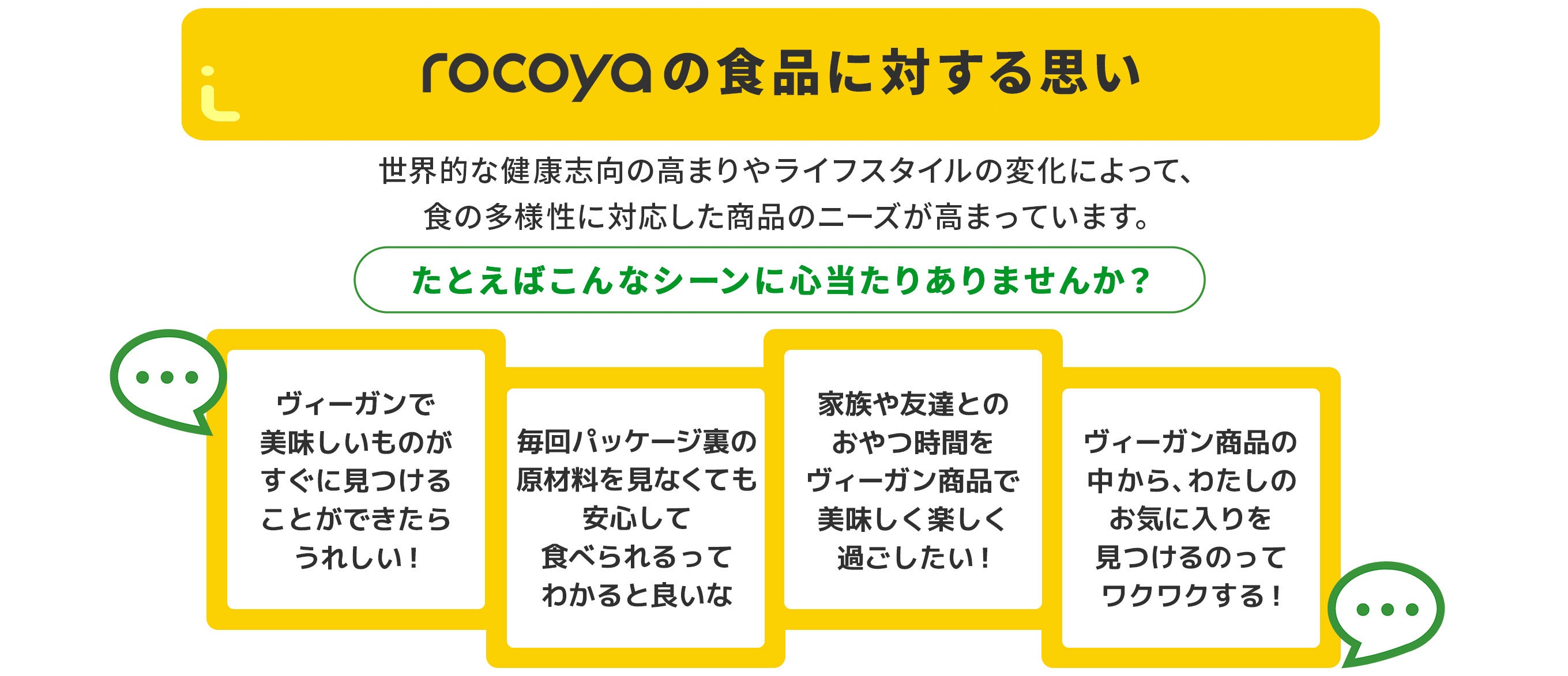 近年、食の多様性に応えた商品へのニーズが高まっています。ヴィーガンの方をはじめとして、様々なライフスタイルの方のニーズにお応えするべく、2022年4月1日に、“Yahoo!ショッピング” 内へ『rocoya shop(Yahoo!ショッピング内 公式直営店)』を出店いたしました。そしてこの度、より多くのお客様に、ますます便利にご利用いただくために、 “楽天市場” 内にも、『rocoya plaza(楽天市場内 公式直営店)』を新しく出店いたします。特定非営利活動法人ベジプロジェクトジャパンの定める、ヴィーガン認証マークを取得した商品を中心に、健康的で美味しい、こだわりの食品を多数取り揃えております。