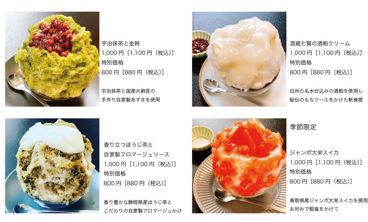 お寿司屋さんならではの和スイーツテイストのかき氷をお楽しみください。