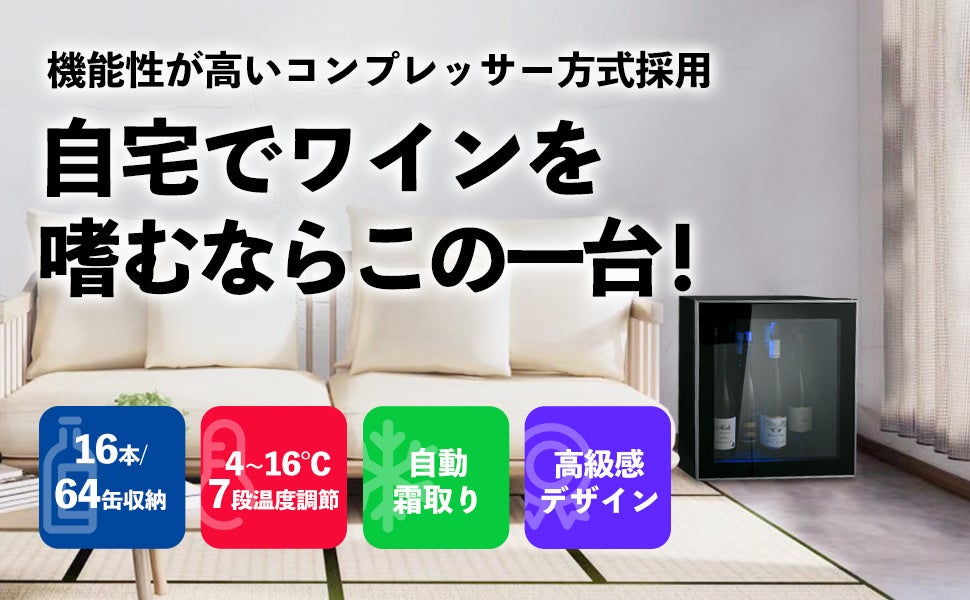 最大16本/64缶収納でき、7段温度(約4~16℃)調節可能で、外気温に影響されにくくてワインやビール、チョコレートの保管に最適な環境を作り、飲み残したワインでも繊細な香りと風味を損なわないようにします。
