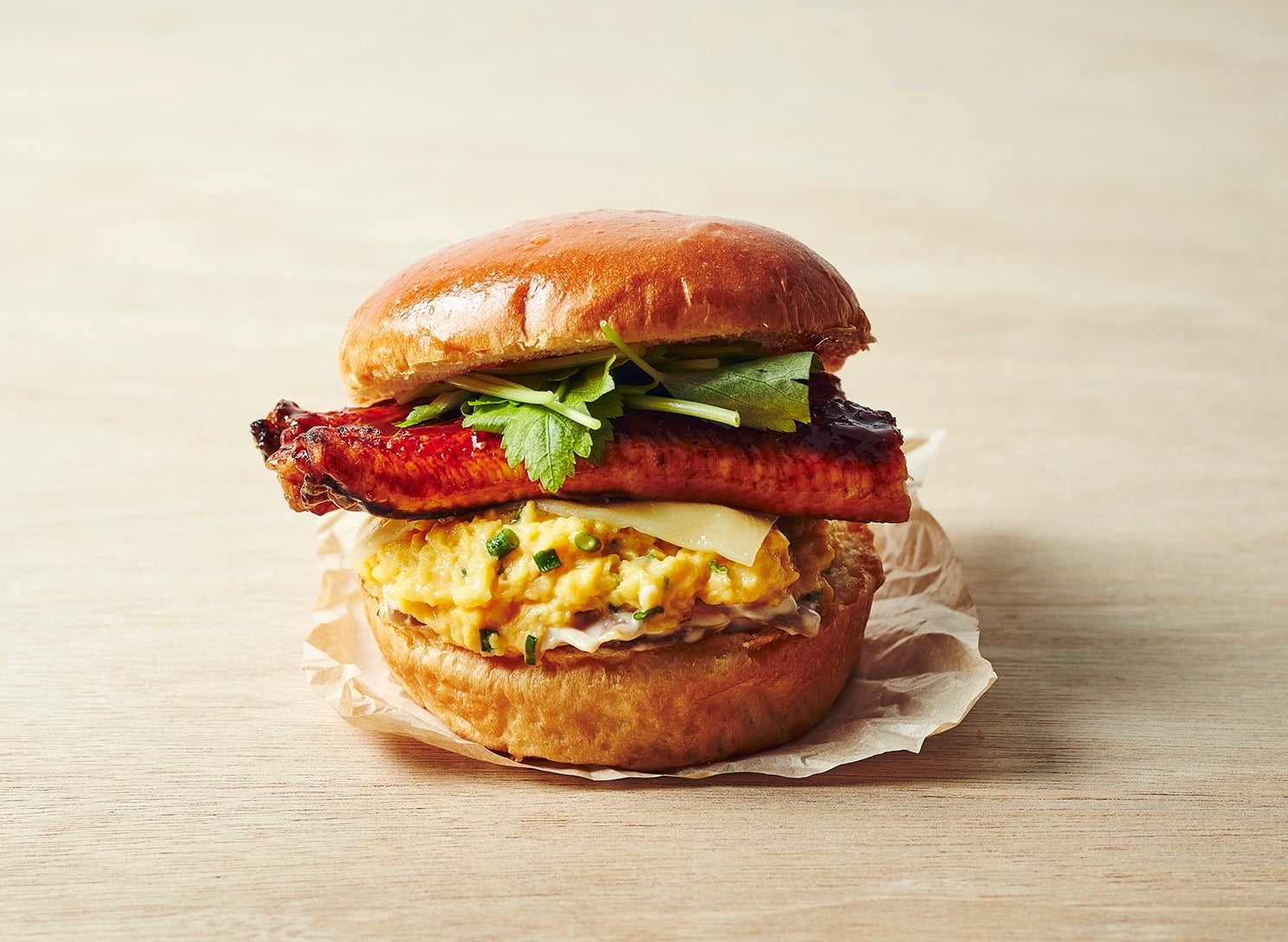香ばしく炙った鰻の蒲焼きを、1/2尾分も使用した豪華なエッグサンド。脂ののったふっくら柔らかい身と食欲をそそる香ばしいタレに、発酵バター香るスクランブルエッグがベストマッチ。ゴーダチーズのコクと刻み三つ葉をあしらい爽やかさをプラス。