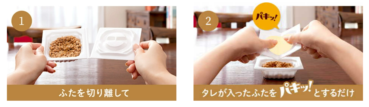 “パキッ!とたれ”は、ふたを切り離し、パキッ!とまん中で折るだけの簡単ステップで、すぐに納豆を召し上がっていただける画期的なたれ容器です。この“パキッ!とたれ”の便利さ、楽しさを採用した「とろっ豆」は、2012年の発売以降、小さいお子様から高齢者の方まで多くのお客様にご好評をいただいております。