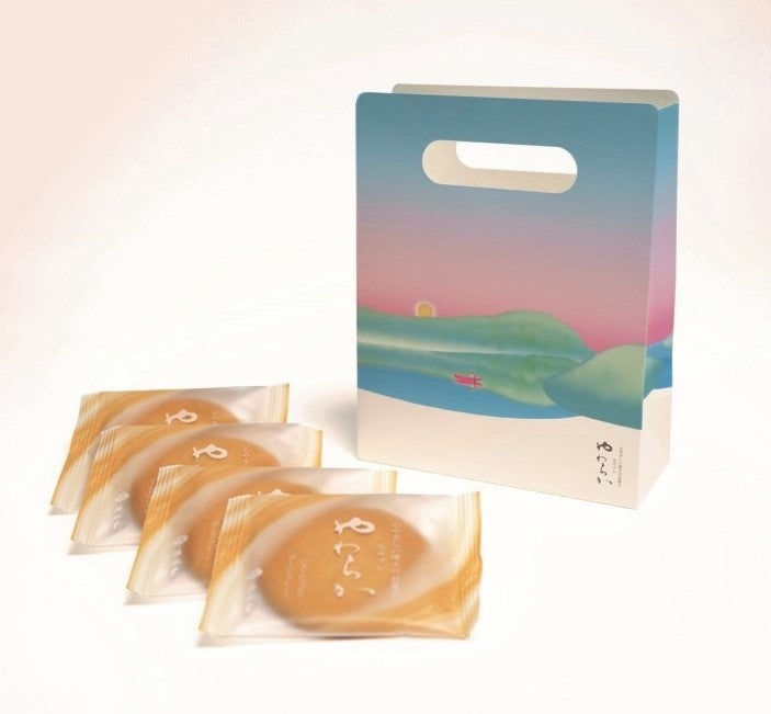 また、やわらかは洋風なお菓子でありながら、そのお菓子作りの原点にはお饅頭作りの技術が生かされていると伺い、ポップな色合いながら、どこか日本的な郷愁を感じる雰囲気を大事にしています。