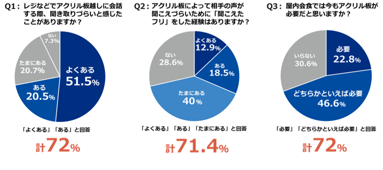 ・利用者の約7割がアクリル板によって「会話が聞き取りづらい」「聞こえたフリをする」などを経験。