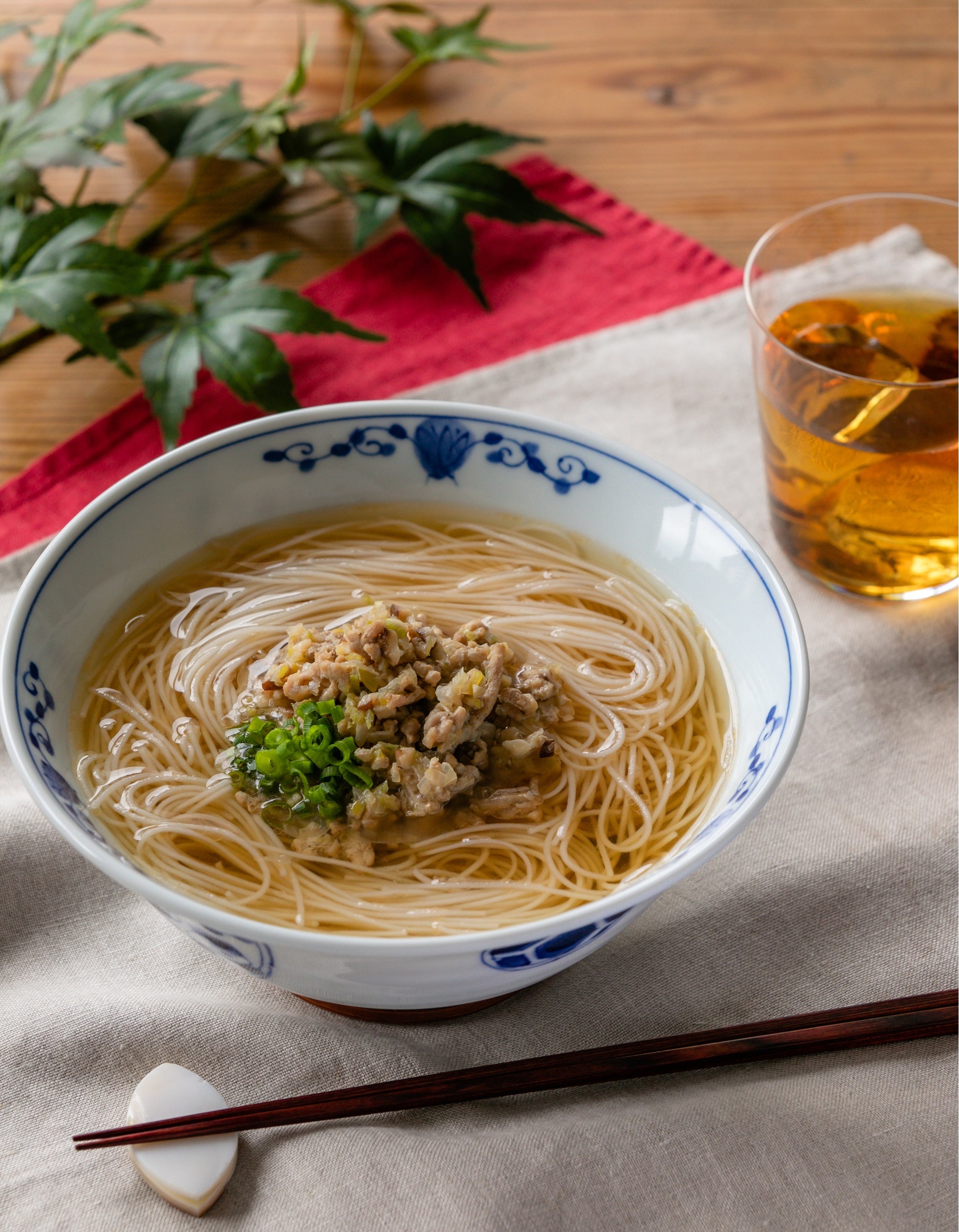 台湾現地では「担仔(タンツー)ビーフン」と呼ばれ、台湾南部の町・台南発祥の有名台湾屋台料理です。鶏やエビからとった出汁と五香粉(ウーシャンフェン)の風味が合わさった、やさしく飽きがこない味わいのスープが特徴のビーフン料理。