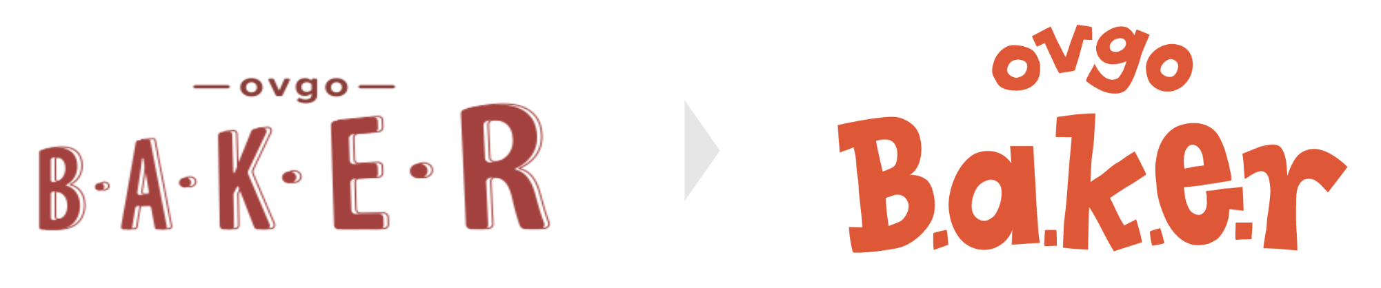 ovgoブランドの持つエキサイティングなエネルギーと遊び心を演出。アメリカンレトロなコミックスタイルからインスピレーションを受け、手描き風のノスタルジックに仕上げたロゴは、親しみやすく、活気のある個性を表現しました。ロゴ全体のスタイルとの相性の良さから、B.A.K.E.R全体ではなく、頭文字”B”のみに大文字を使用しました。また大文字には威圧感が出るため、丸みの多い小文字と組み合わせることで、ovgoのフレンドリーさもより強調できているかと思います。