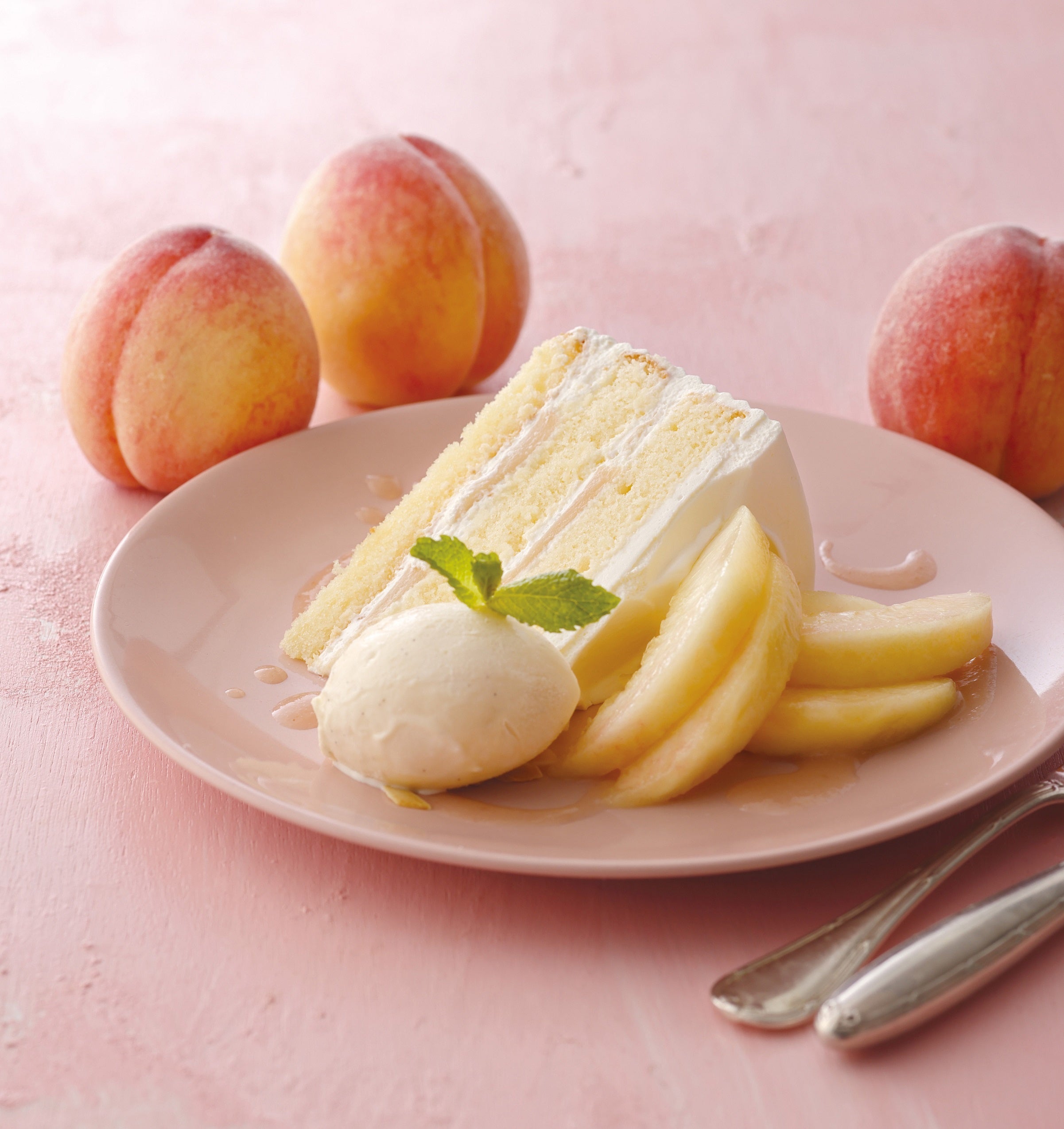 後半は、シンプルな仕立てで桃の美味しさが際立つ「白桃のショートケーキ バニラアイス添え」を実施します。