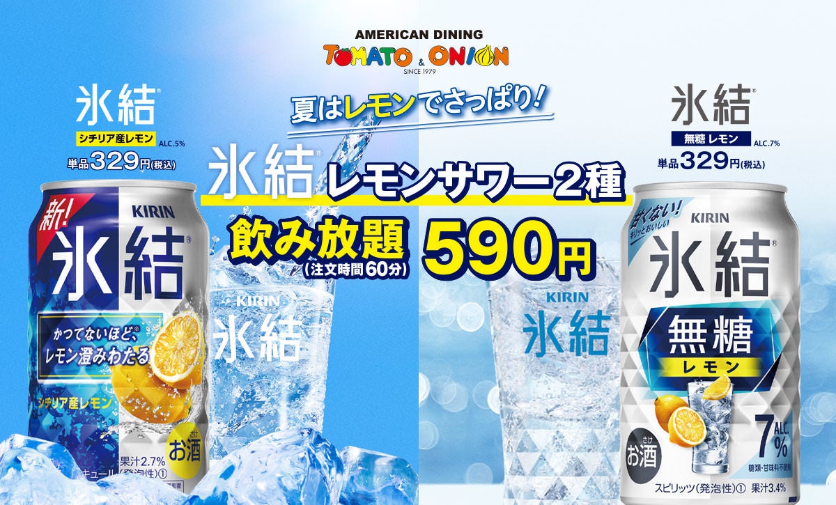 株式会社トマトアンドアソシエイツ(本社:兵庫県西宮市、代表取締役社長:小林 大二)が運営する、アメリカンダイニング「トマト&オニオン」では、2022年7月15日(金)から2022年8月21日(日)まで、『氷結レモンサワー2種が楽しめる飲み放題プラン』を販売いたします。