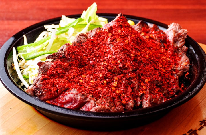 真っ赤なビジュアルに驚く『火山ステーキ』ですが、激辛料理が得意ではない方にもおすすめできるほどよい辛さです。