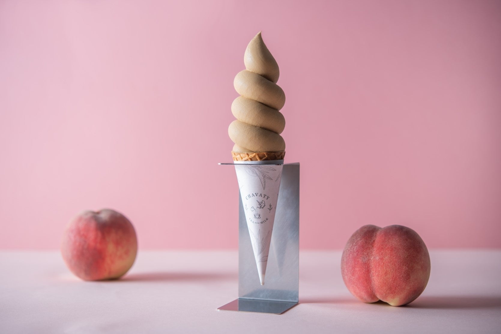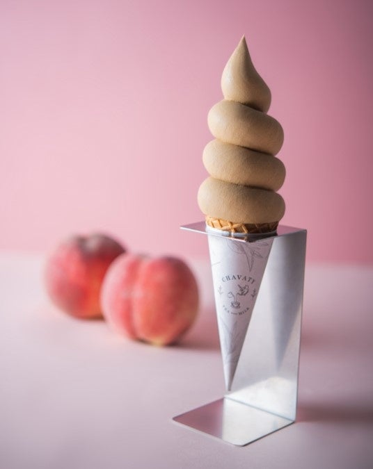 CHAVATYのシグニチャーティーであるスリランカ産ウバのクオリティーシーズンのみを使用し、茶葉を丸ごと粉砕して仕上げたティーラテソフクリームに、ピーチ本来の気品ある芳醇な香りと程よい甘さを合わせた、ひんやりと軽い食感のピーチティーソフトクリームで心癒されてみませんか。