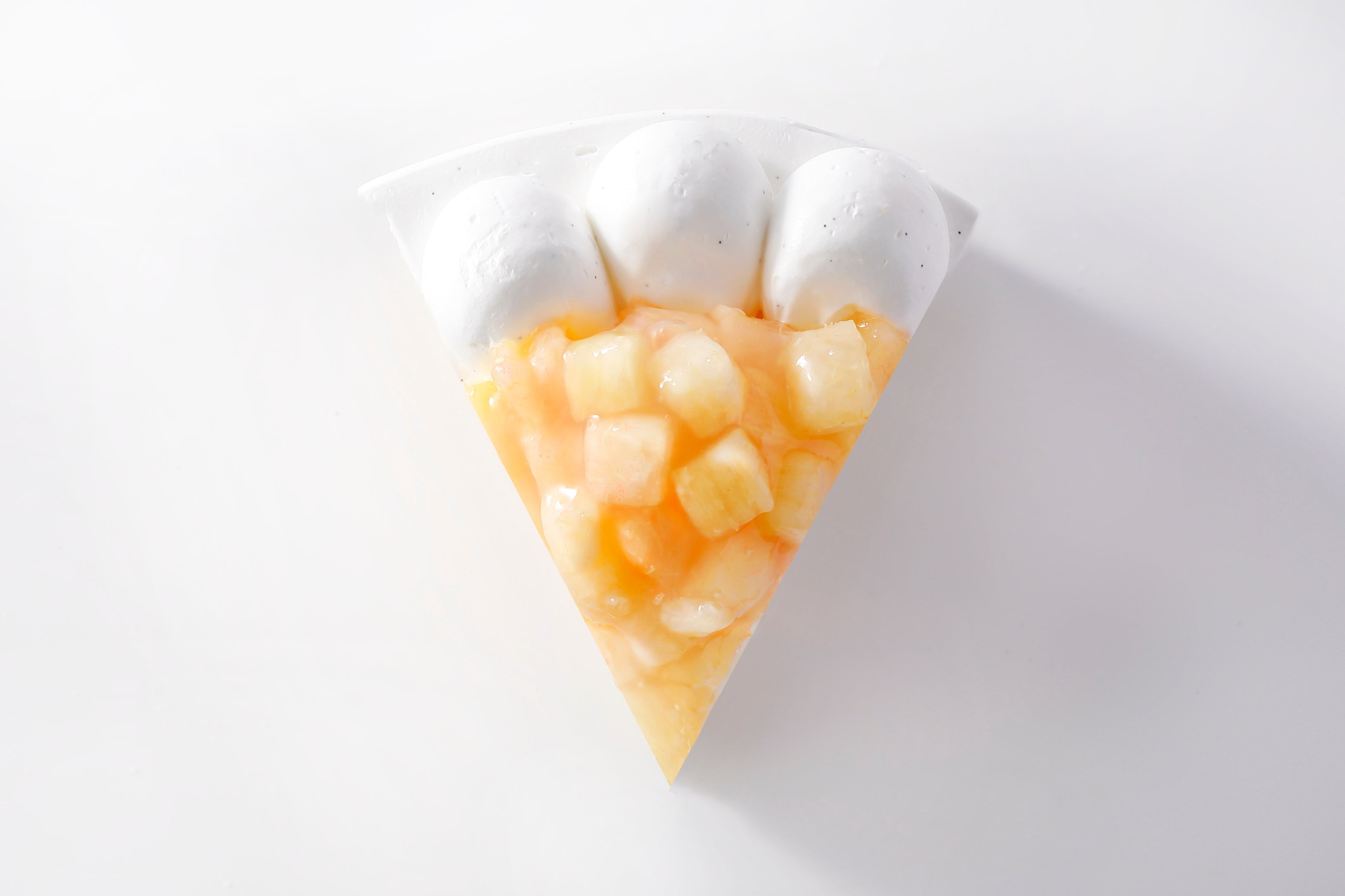 トッピングには、スポンジやクリームとの調和をはかるため、ライチはちみつでマリネし葛をまとわせた桃を乗せ、味わいの違いもお愉しみいただけます。さらに、今年は隠し味として刻んだライチを層として忍ばせ、ジューシーな桃の味わいに爽やかさをプラス。口に入れた時に、フルーツの美味しさとさっぱりとした生地、軽やかな口どけの生クリームが一体となる「究極のショートケーキ」をご堪能ください。