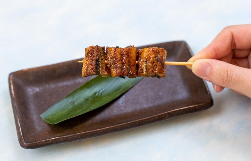 鰻を食べやすいサイズで串に刺し、じっくり焼き上げました。仕上げに香り高い山椒を。ふわっと柔らかく、香ばしい鰻の蒲焼はお酒と相性抜群です。