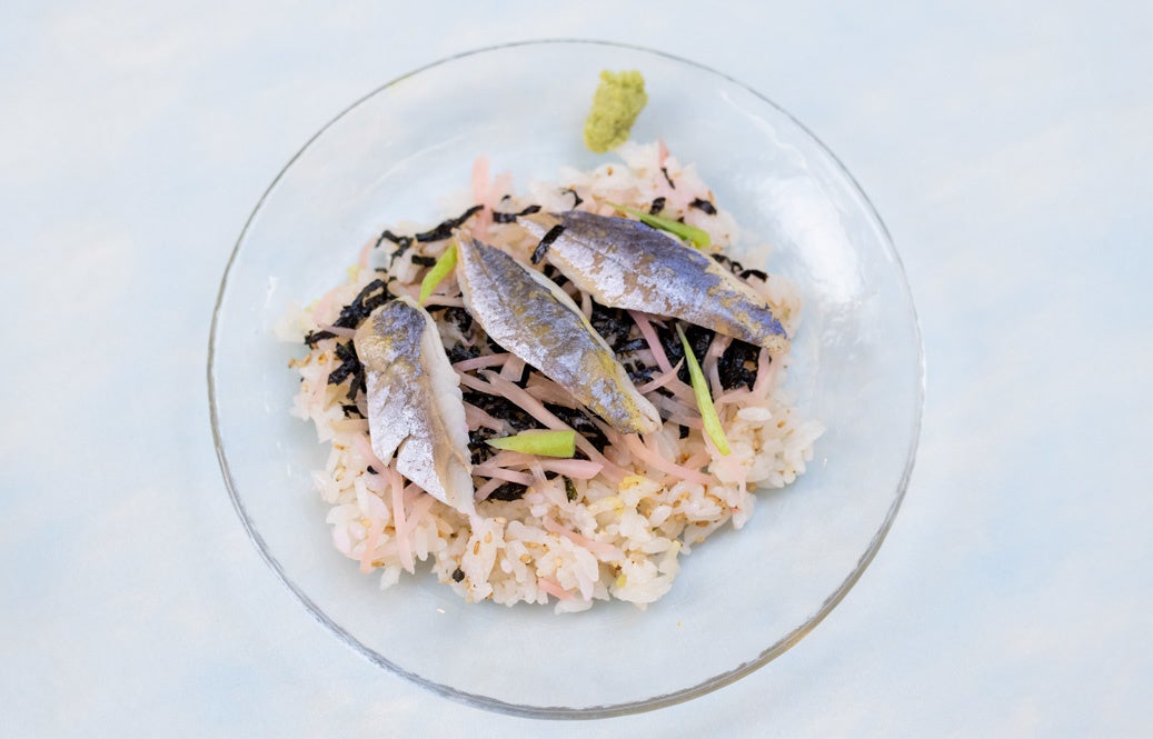 脂がのった鯵をお酢で締め、みやび自慢の胡麻シャリに載せました。トッピングされた刻みガリや山葵は、鯵酢〆の美味しさを更に引き立ててくれます。さっぱりとしていて最後の〆にぴったりの逸品です。