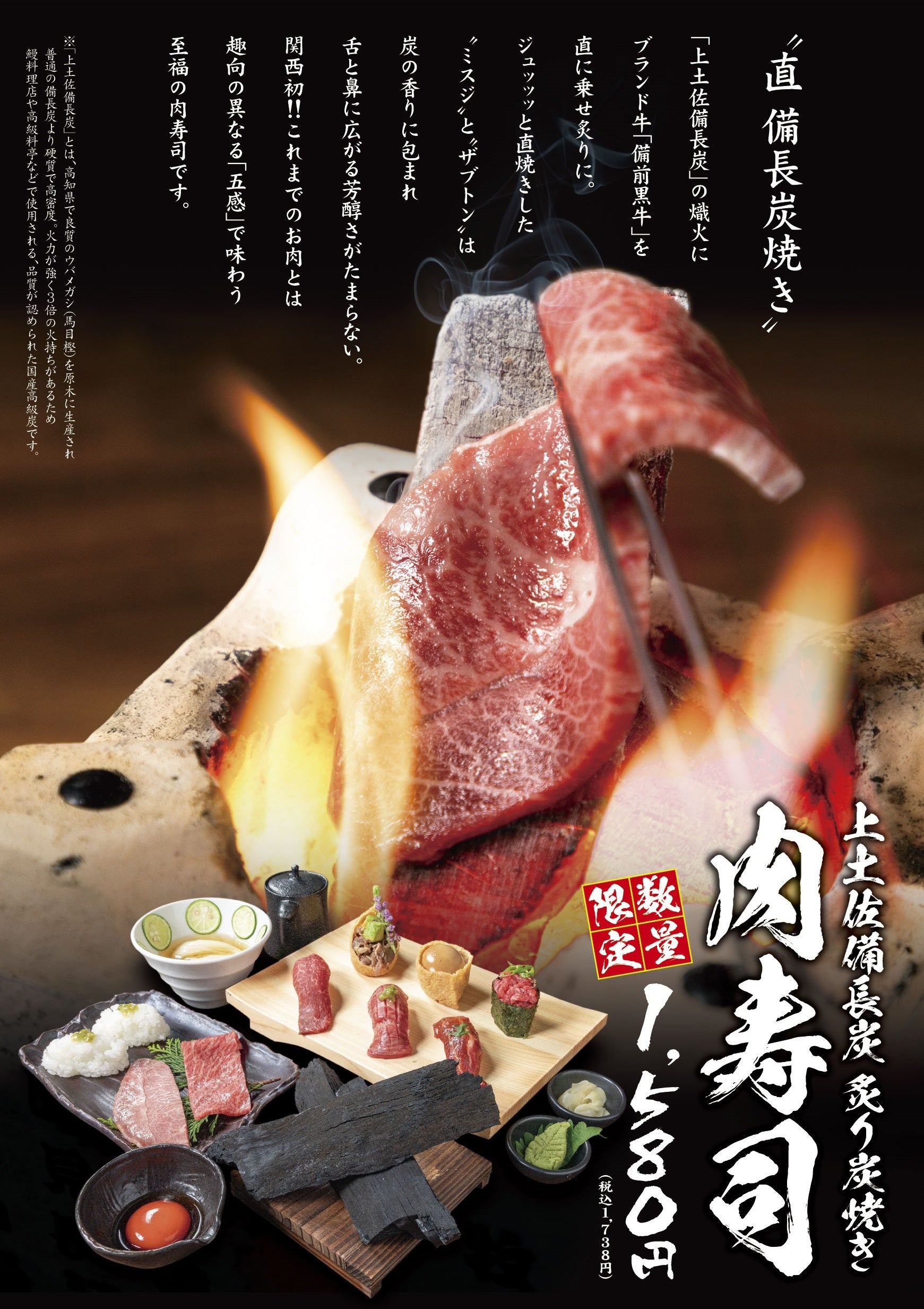 - 8月末まで1日限定15食のスペシャルランチ「炙り炭火焼き!肉寿司」