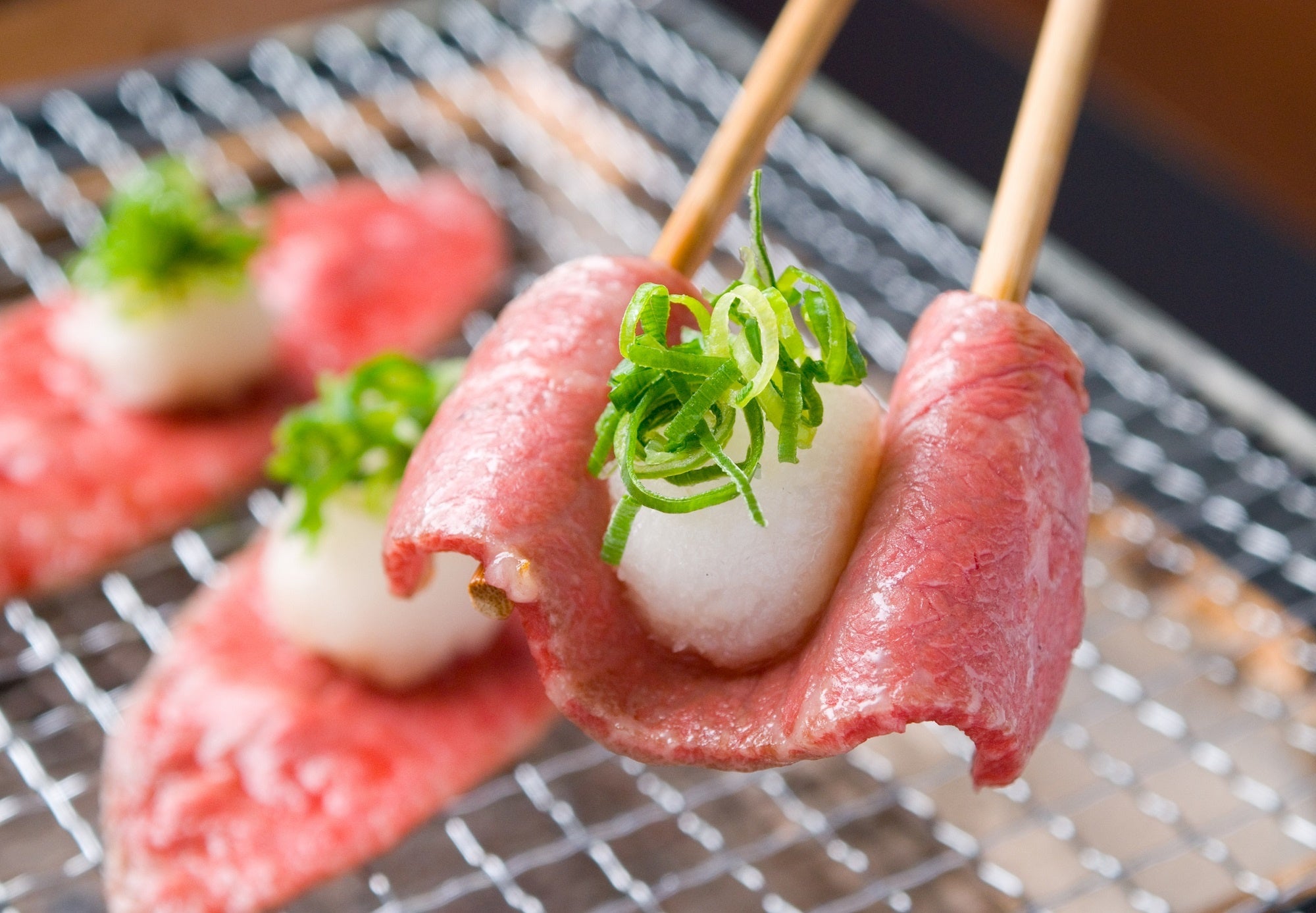 牛虎の名物メニュー牛一頭から2~3キロしか取れない希少部位、両面を炙っておろしポン酢であっさりと頂きます
