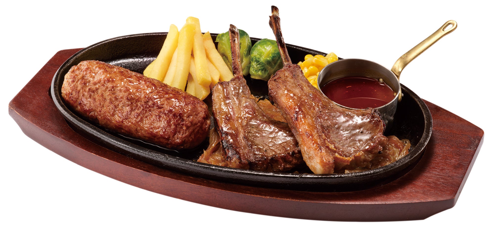 最後に、ブロンコビリー初挑戦の羊肉がメニューに。こだわりの炭火でじっくりと、表面がカリっと焼かれたラムチョップは、絶品です。『炭焼きスパイシーラムチョップ&炭焼き超粗挽きビーフハンバーグ』は、スパイシーでピリ辛な味わいのケイジャンソ―スとお楽しみください。