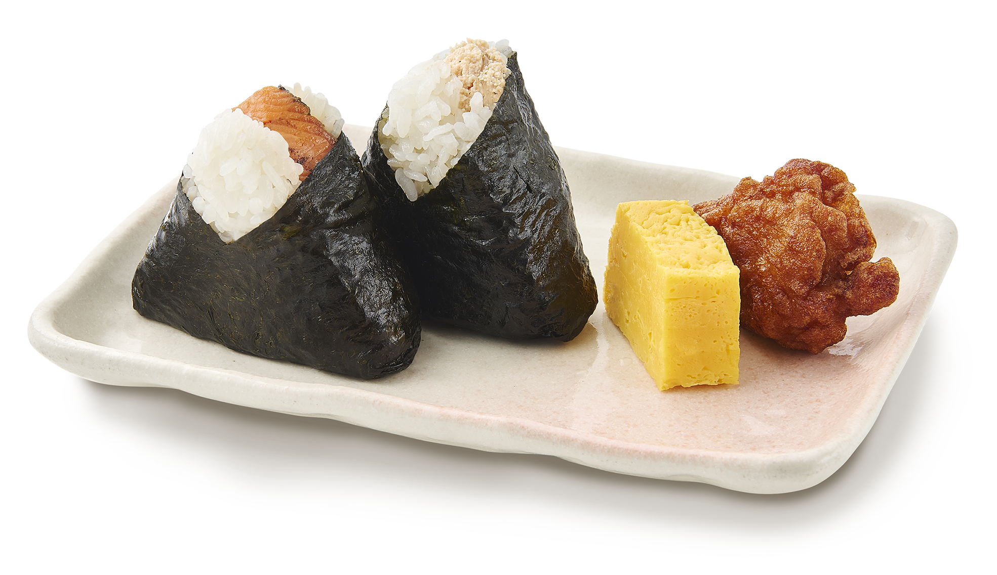 ほんのり屋で人気の「鮭」「炙りたらこ」にお惣菜(唐揚げ・卵焼き)がついたセット。