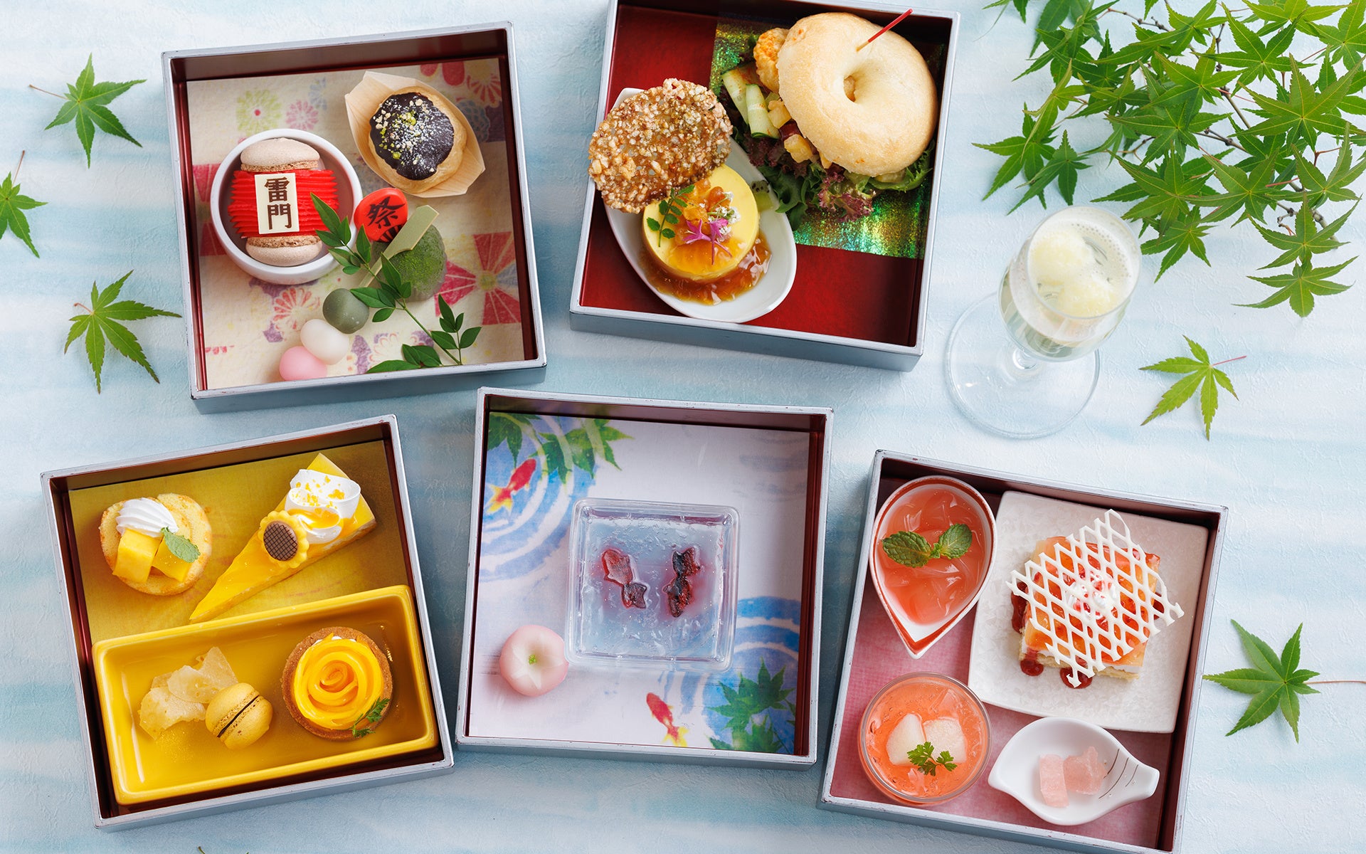夏のきらめきと浅草の風流を感じるスイーツ、そして総料理長考案のセイボリーをお召し上がりいただけます。