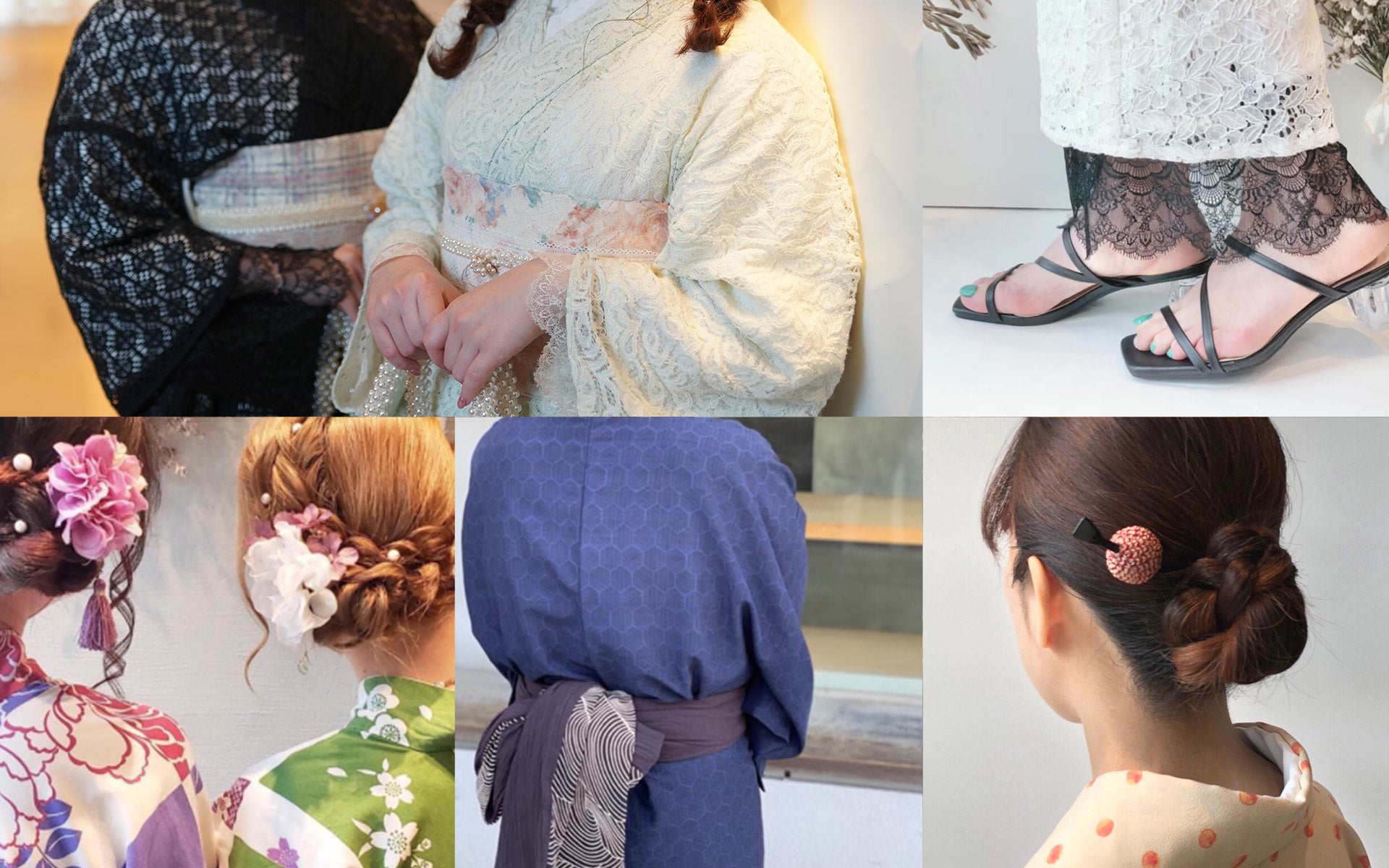 レンタルには、浴衣一式(浴衣、帯、浴衣用肌着、かご巾着、下駄、かんざし)、着付け、ヘアセットが含まれていますので、手ぶらで気軽に利用できます。