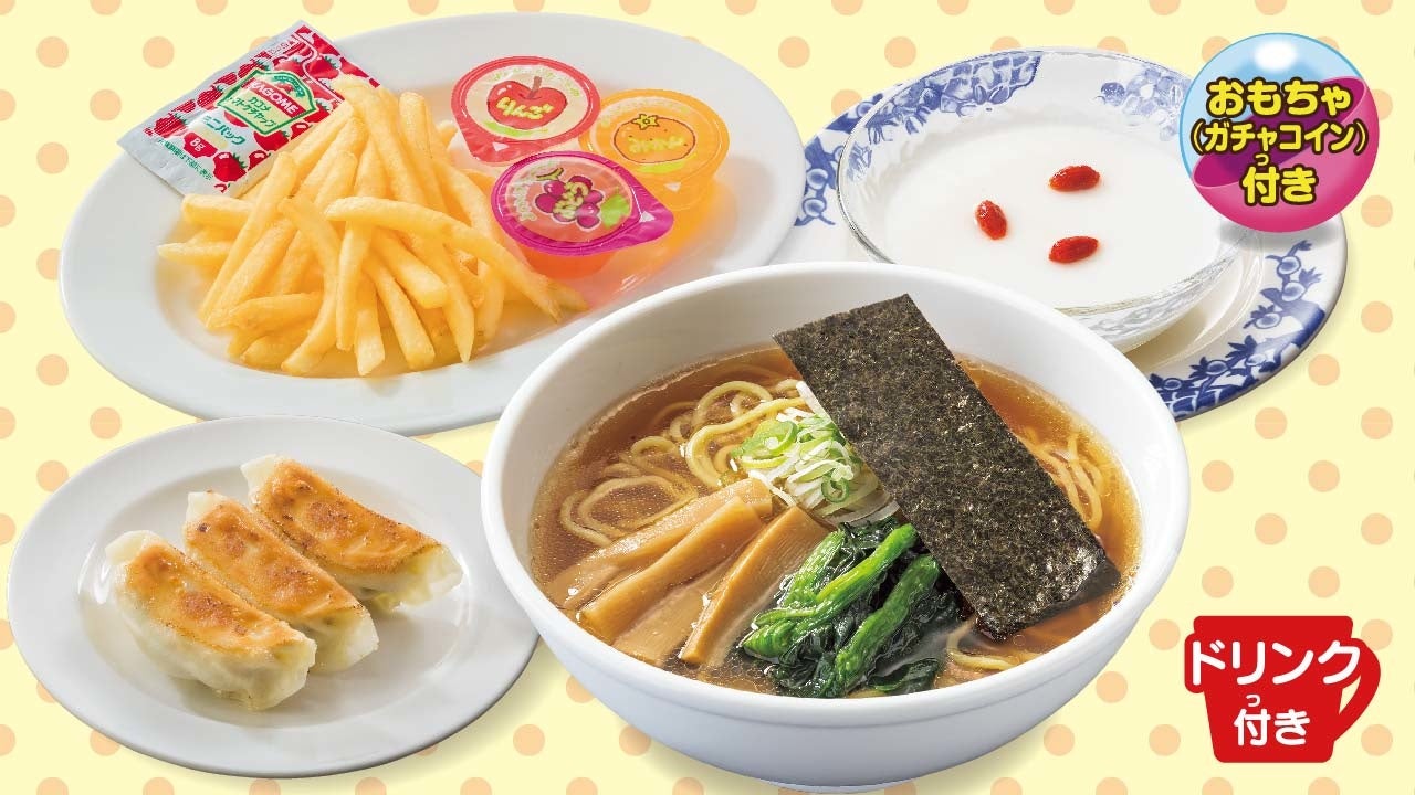 ・ラッキー中華セット(キッズラーメン、餃子(3コ)、ポテト&ゼリー、アンニンドウフ、ドリンクバイキング)
