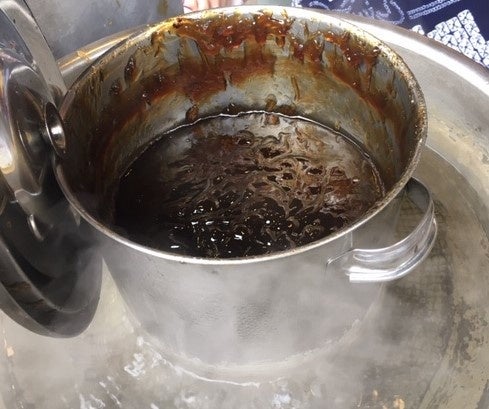 みたらし団子の“タレ”は自社内で職人が手作業で仕込みから作成までを一貫して行い、代々味の変わらない鼓月だけのこだわりのレシピを使用しお作りしております。沖縄県産の黒砂糖を使用することで、醤油辛さだけでなくマイルドな甘みをプラスし、味わい深い“コク”を追求しております。また、こだわりの“タレ”は絡みやすく最初から最後までみたらし団子を楽しんでいただけます。