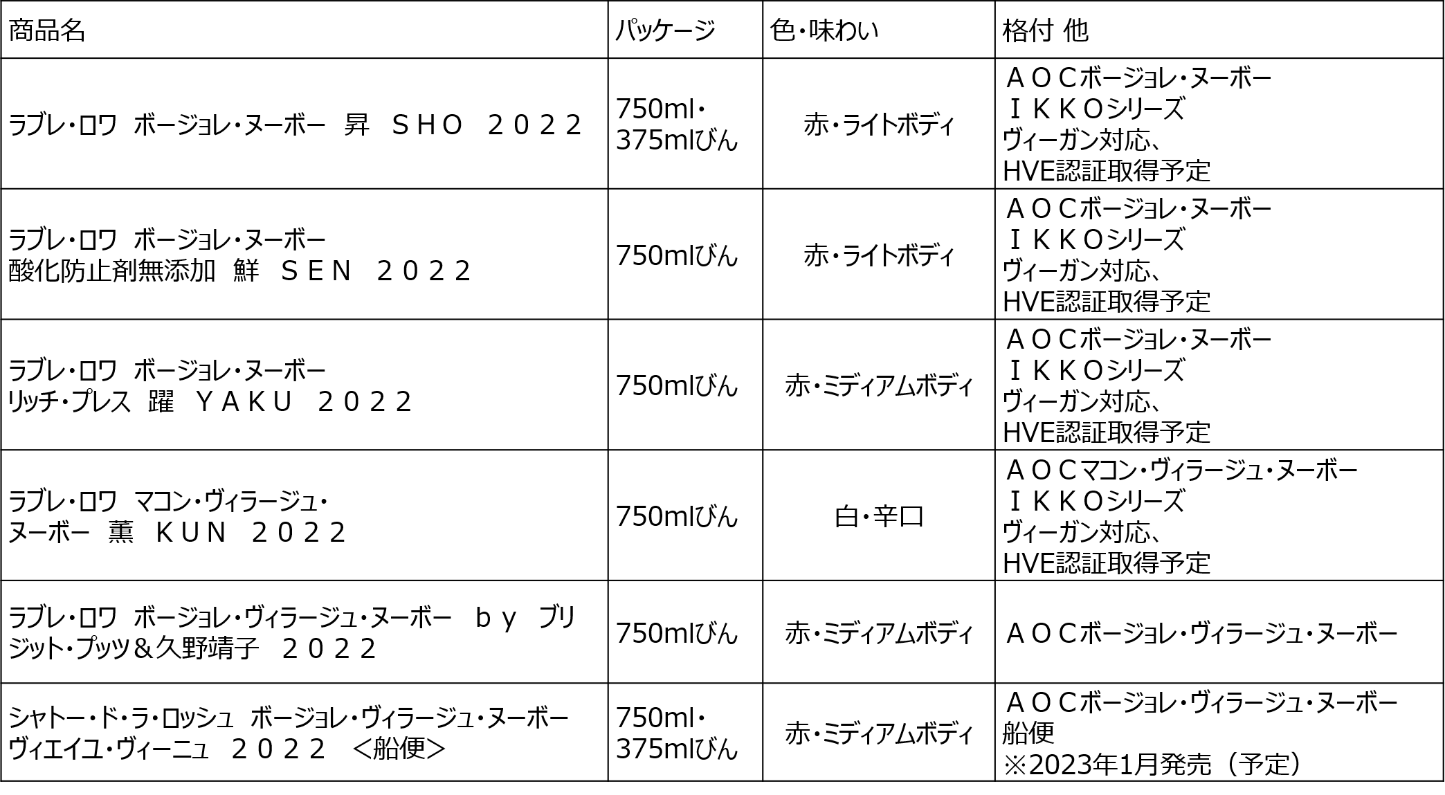 なお、「ボージョレ・ヴィラージュ・ヌーボー ヴィエイユ・ヴィーニュ 2022」2アイテムは、船便でのお届けのため2023年1月の発売を予定しています。なお、船舶運航状況により多少前後する場合がございます。