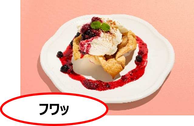 サクサクのパイ生地をベース に、バターで焼き上げた林檎を添え、上にはたっぷりのアイスクリームとベリーソースをかけました。アクセントにフワッと香るシナモンで仕上げました。