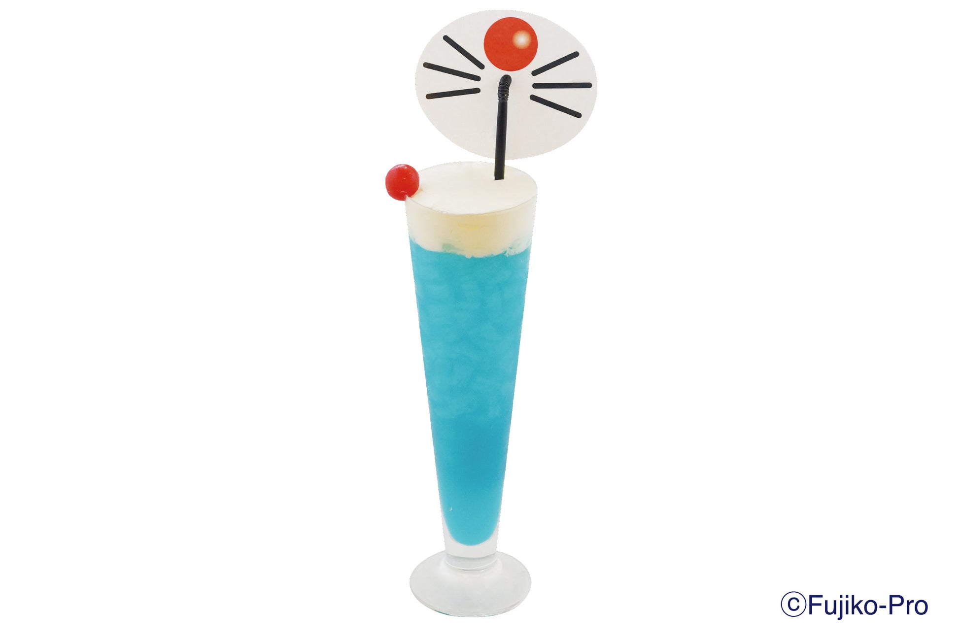 約30㎝の背の高いグラスでご提供する大人気ドリンクです。グレープフルーツジュースとピーチシロップをブレンドした爽やかな甘さのドリンクに、白いラテクリームとレッドチェリーを添えてドラえもんをイメージしました。ストローを顔に近づけてみると…?みんなでドラえもんになって、記念撮影をお楽しみください。