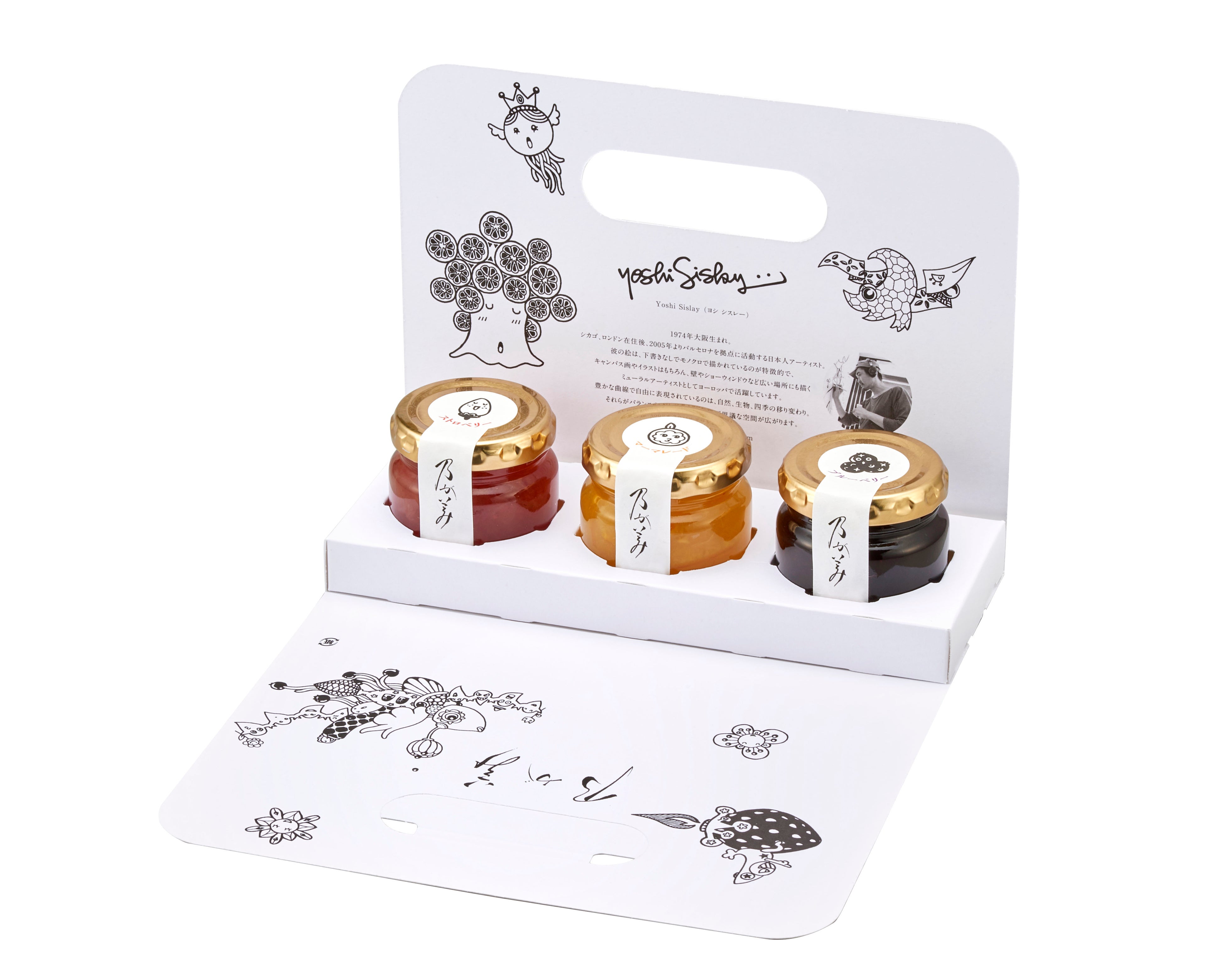 「こだわりジャム小瓶3本セット」は、国産のフルーツのみを使用したストロベリー、マーマレード、ブルーベリーの定番ジャムを1セットにした商品です。元々、3種のジャムは「創業乃が美」の味わいに合うように開発され、長年愛されてきました。今回、日本人ミューラルアーティストYoshi Sislayさんが乃が美のためだけに制作したオリジナルデザインをパッケージにあしらい、プレゼントやお土産にぴったりの商品として生まれ変わっています。