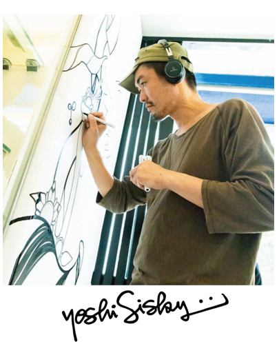 Yoshi Sislayさんは、街中の壁画をキャンパスに見立てる「ミューラルアート」を得意とする日本人アーティストです。下書きなしで作品を作り上げる自由なスタイルが特徴的で、豊かな自然や生物、四季の移り変わりをモノクロで表現しています。乃が美は、真っ白なキャンバスを自由に描くYoshi Sislayさんのスタイルに共感し、「『生』食パンを、様々な召し上がり方で自由に楽しんでいただきたい」という想いを込めて、オリジナルデザインを制作いただきました。