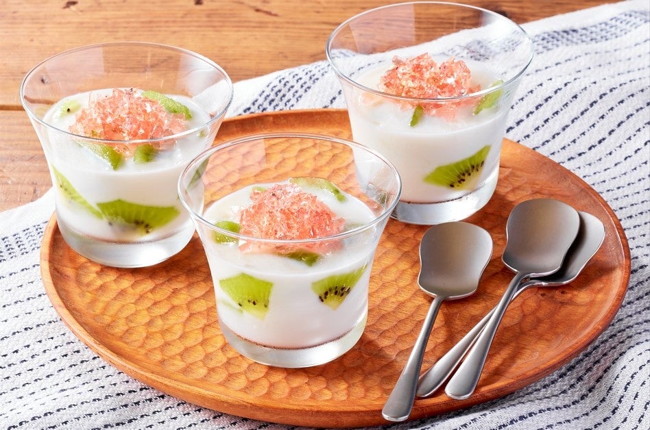 今回のメニューで使用している「寒天」は、テングサ・オゴノリなどの海藻から作られ、ゼラチンでは固められないフルーツを固めることができ、夏でも溶けにくいといった特長があります。調理しながら食材の不思議を学べる工夫も盛り込んでいます。