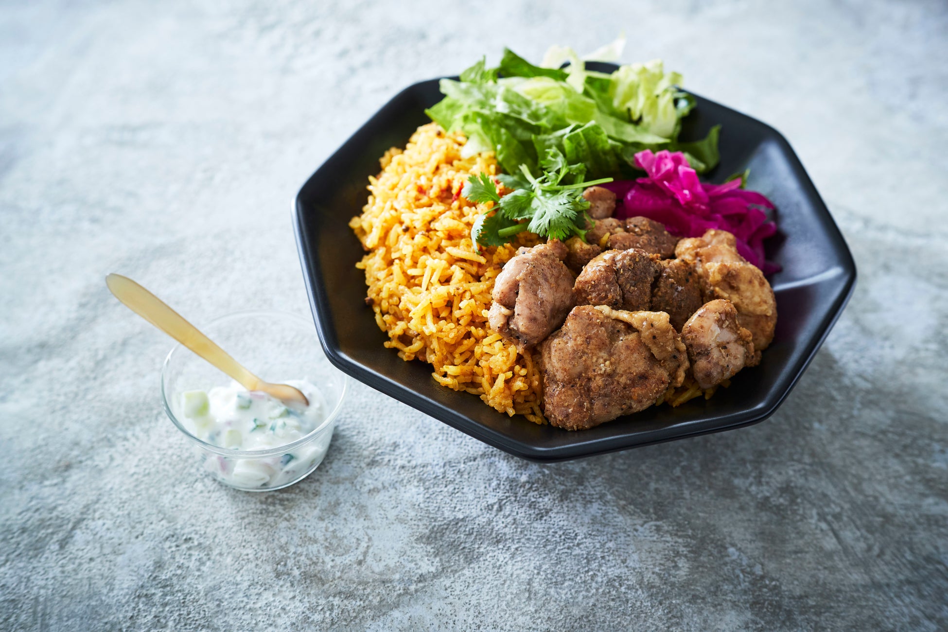 「スパイス香るチキンのビリヤニ ライタ(ヨーグルトソース)付き」843円(税込)
