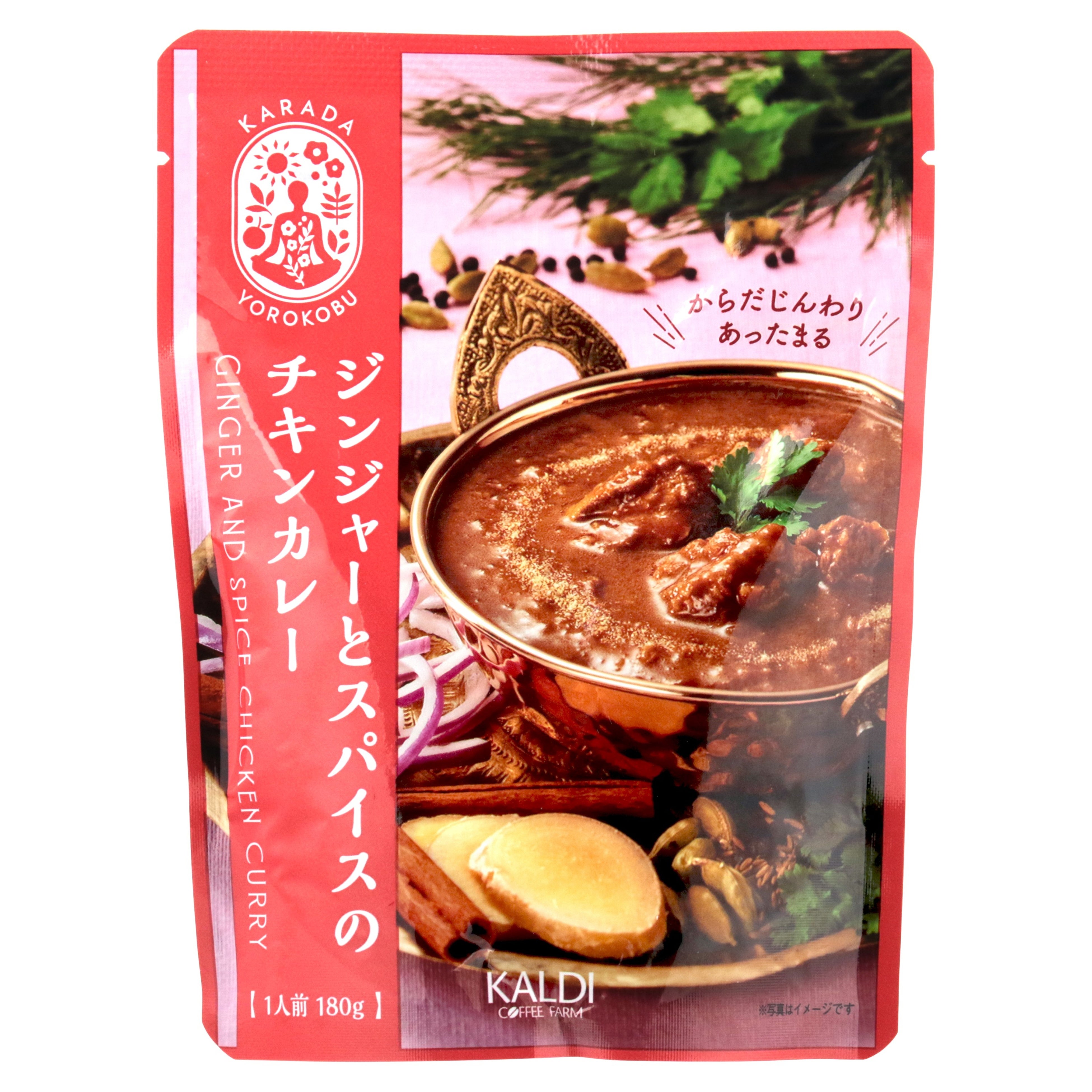 「 KALDI オリジナル カラダよろこぶ ジンジャーとスパイスのチキンカレー」378円(税込)