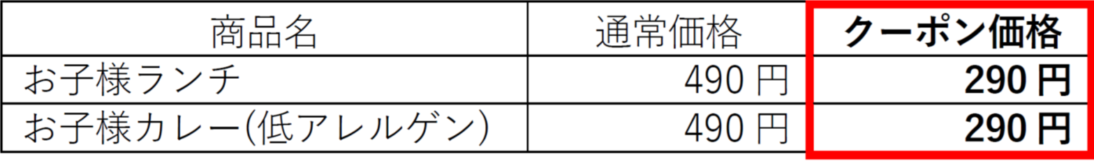 ※『[テイクアウト]お子様ランチ』は、『なんどもパス』の割引対象外です