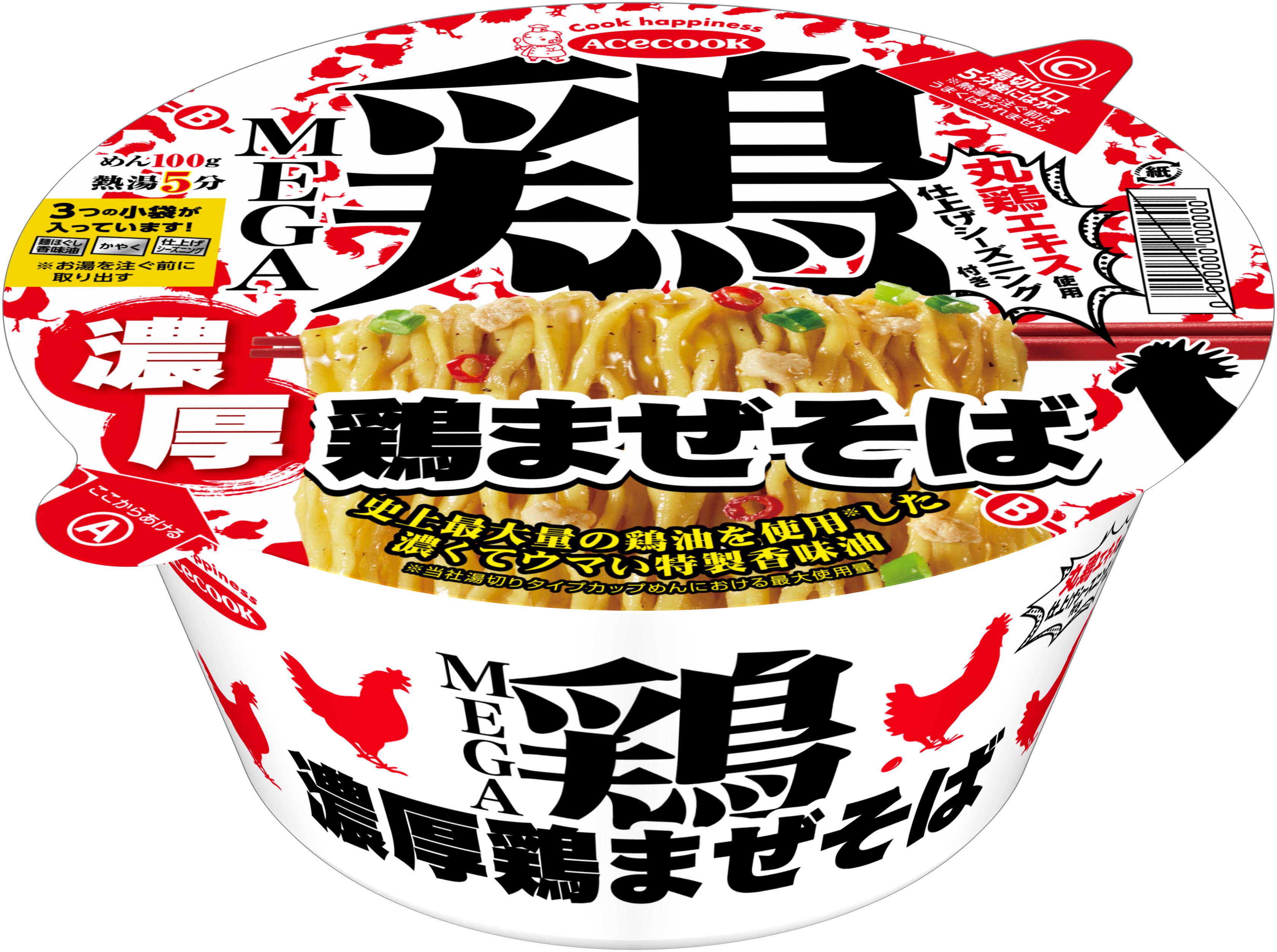 エースコック株式会社(本社:大阪府吹田市 社長:村岡寛)は、2022年7月25日より、「MEGA 鶏 濃厚鶏まぜそば」を新発売します。